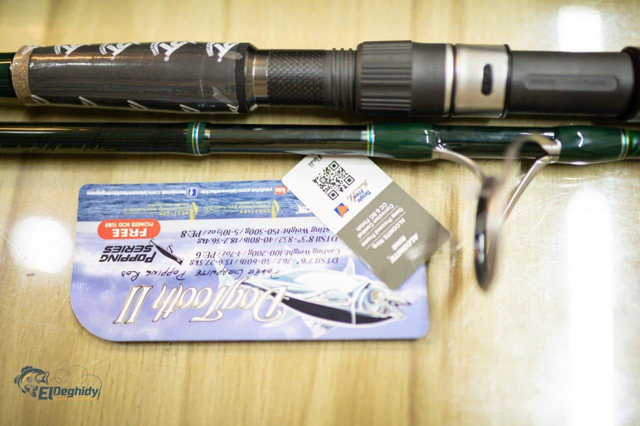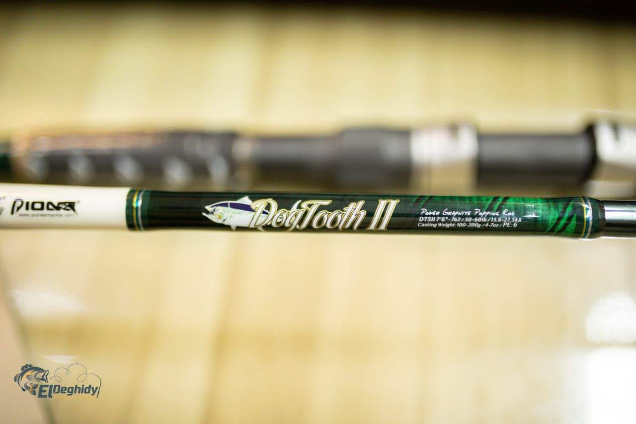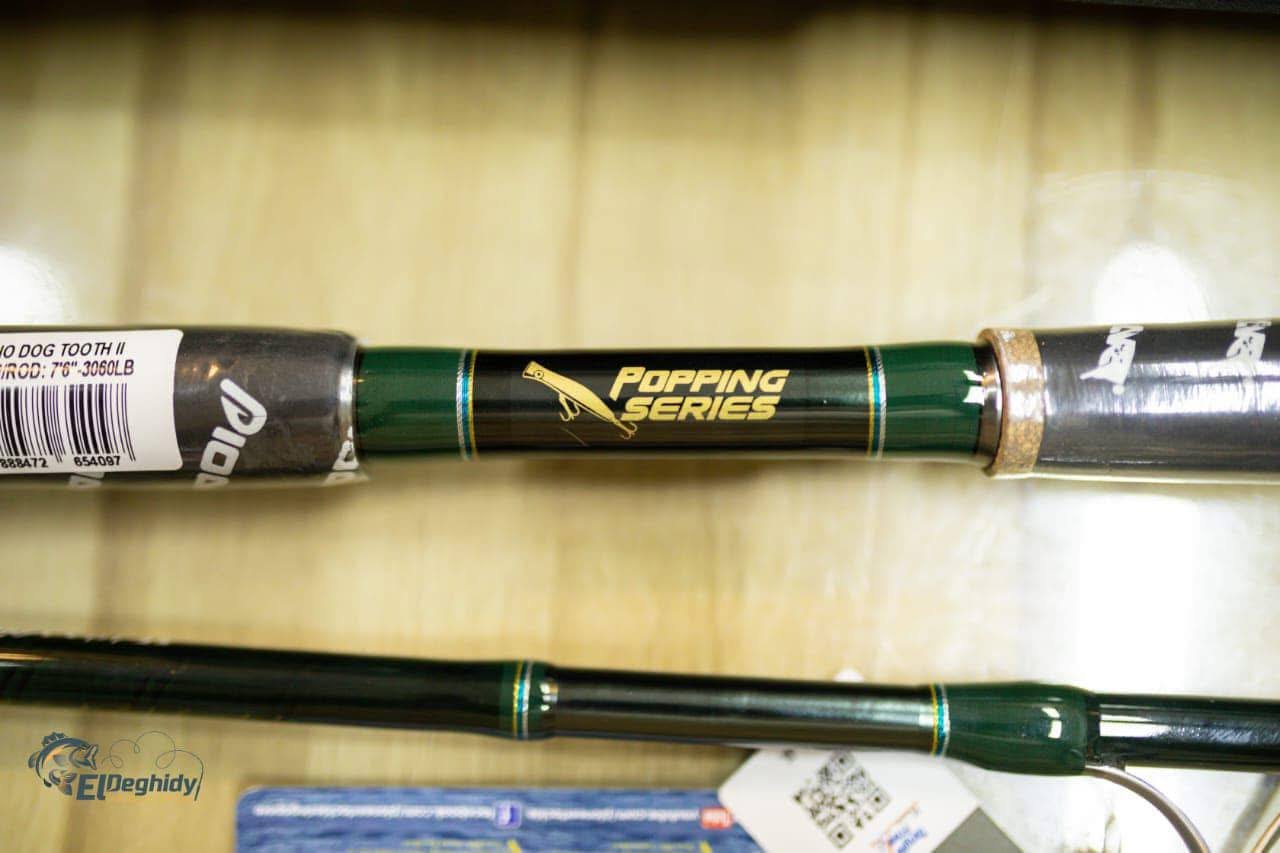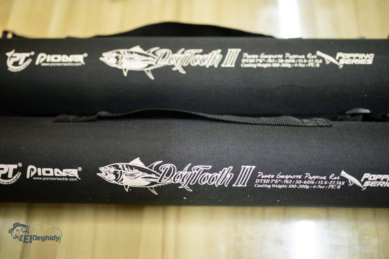 عود Pioneer Dog Toth Popping مصمم لمواجهة الأسماك القوية في الصيد البحري. بطول 2.4م، وأوزان طعوم حتى 200 جرام، مع تصميم ثنائي القطع لسهولة النقل، يوفر أداءً احترافيًا لعشاق البوبينج.